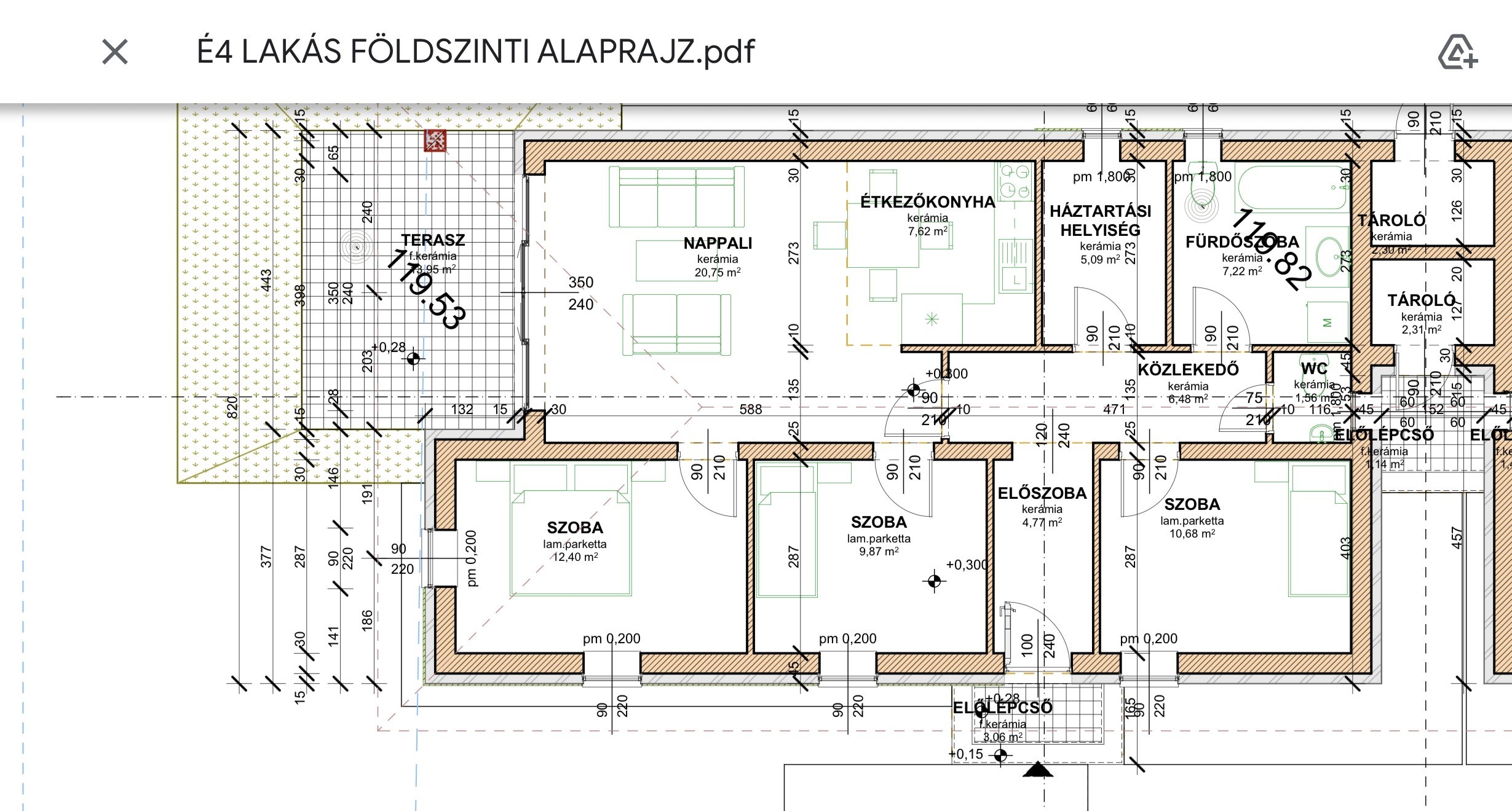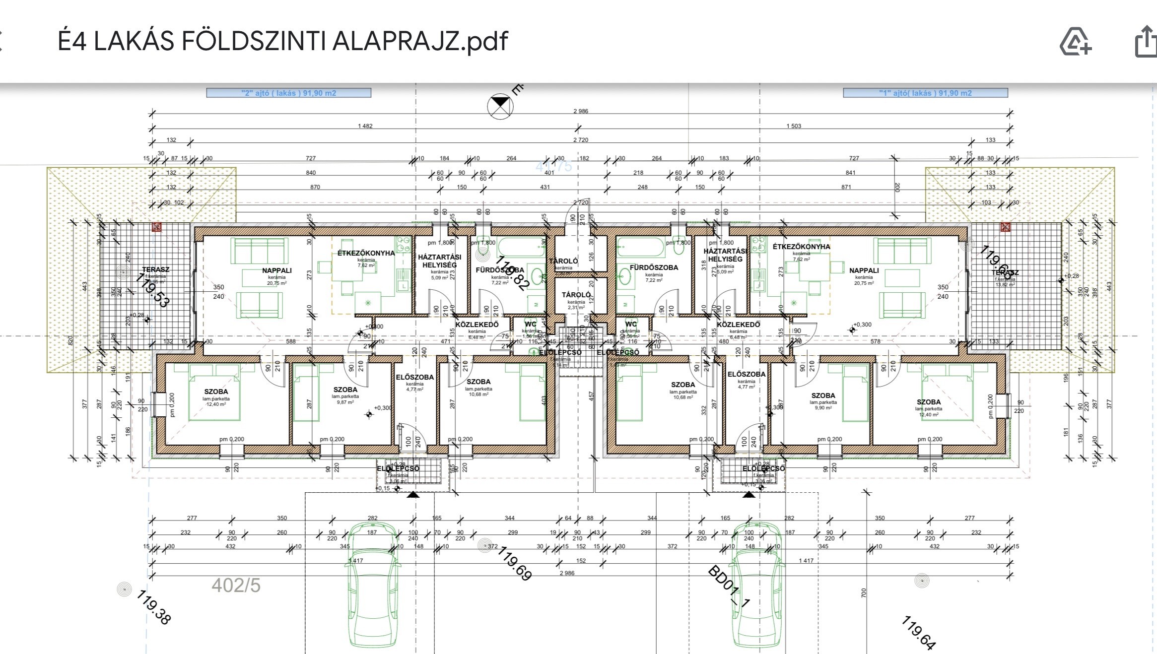 Az lakások teljesen leválasztott telekkel rendelkeznek, külön bejárattal . Nettó : 92 nm alapterületű + 14 nm fedett terasz .